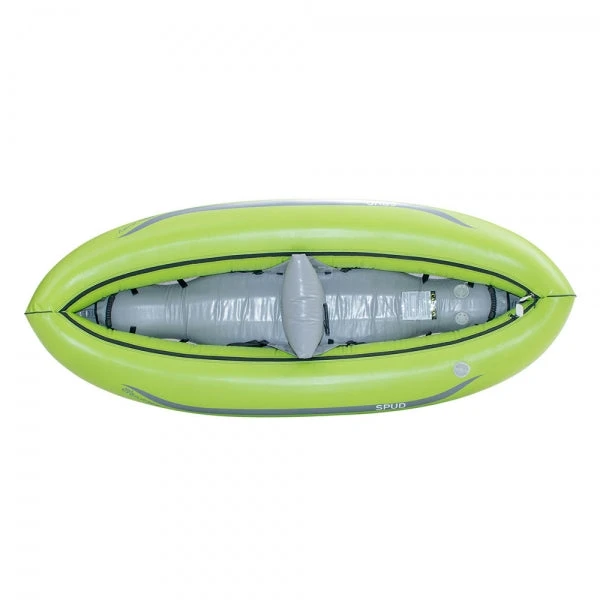 The AIRE Tributary Spud Inflatable Kayak is a compact sized IK for kids and adults alike. Kids will appreciate the increased stability and better maneuverability of the Spud, while adult paddlers will enjoy the sportiness of the boats short design without feeling like they’re sinking it. The Spud is self bailing and features AIRE’s popular AIREcell system.