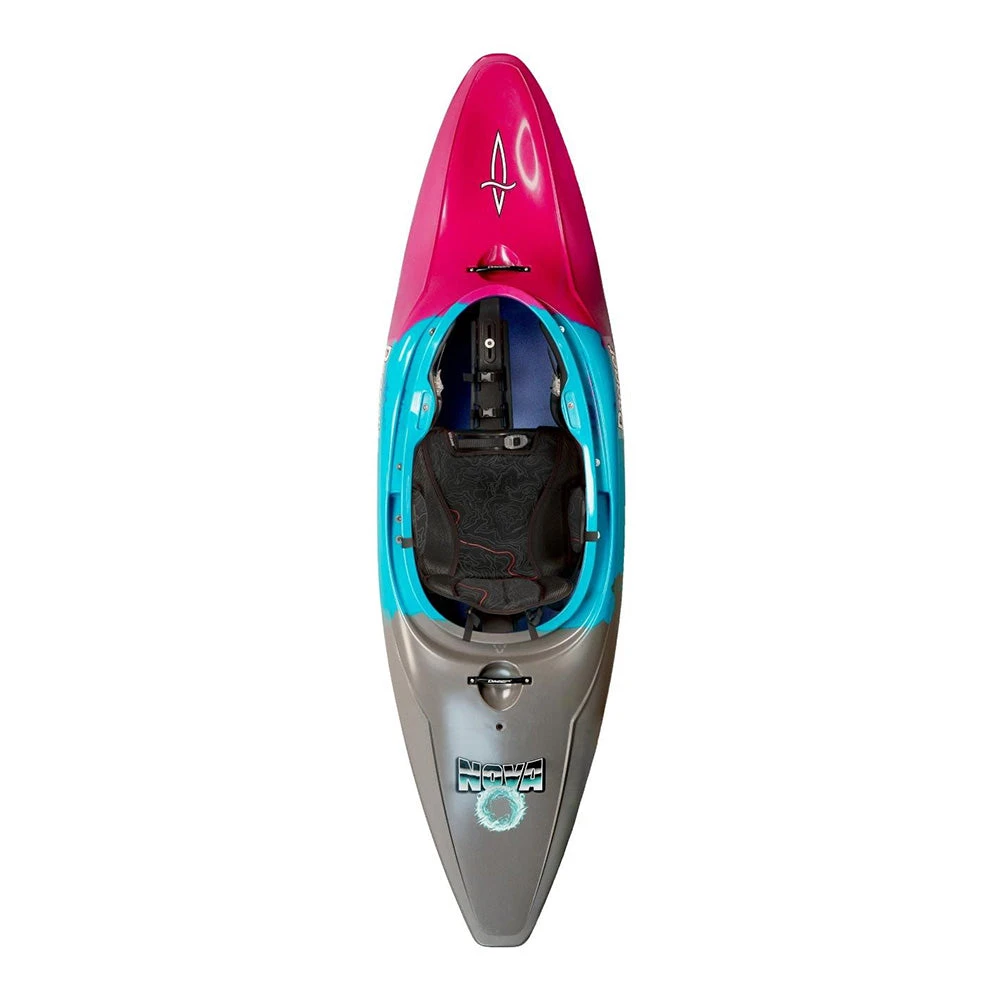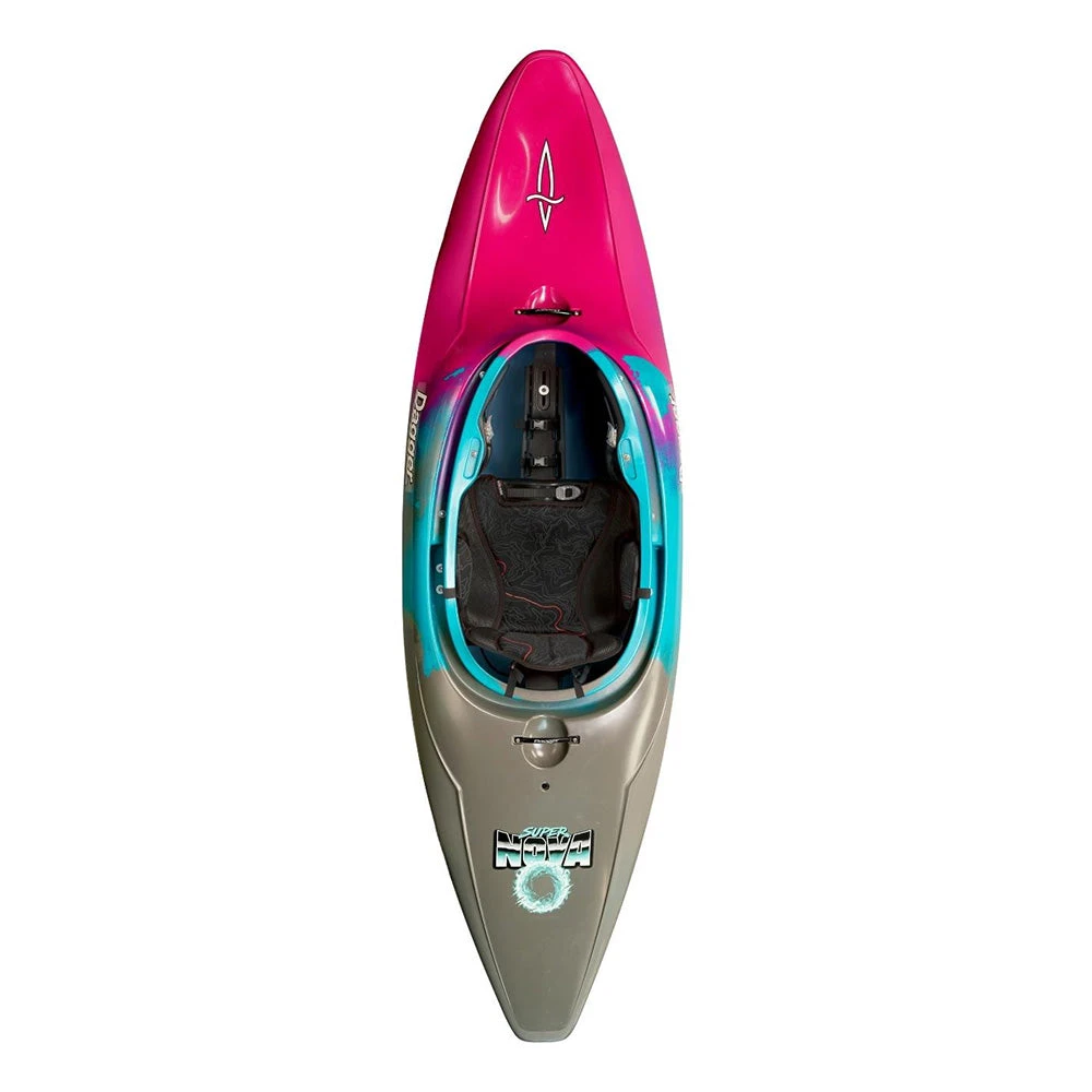 The Dagger Nova and Super Nova Full-Slice Whitewater Kayaks are a modern take on a classic design! Borrowing from the full-slice designs of the late 90s, the Nova series will spin, splat and cartwheel to your hearts desire! Thanks to its modern Contour Ergo outfitting and hull design with raised knees and extra foot room, the first thing you’ll notice is the difference in fit and comfort compared to old school designs. The next thing you’ll notice is the hull speed… this thing is fast and surfs like a dream! Drop the edge and you’ll immediately notice its well balanced design that will allow you to throw ends for days. This is a great design for squeezing the most out of your low-water seasons or for those that want to up their old-school freestyle game. #thesliceisnice