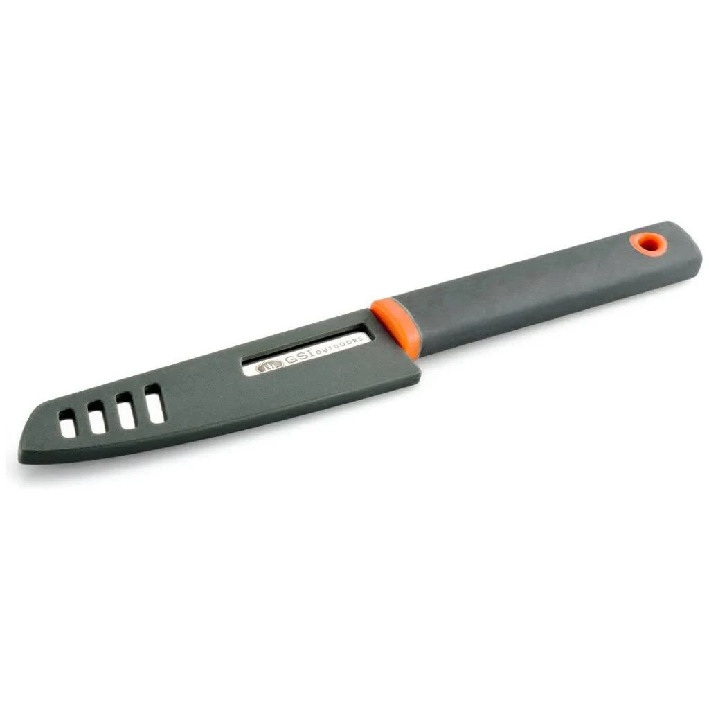 The GSI Santoku Knife allows you to prep your gourmet camp meals with ease. Featuring a stainless steel blade with a little bit of rocker, makes the Santoku perfect for chopping and dicing. The knife comes with a protective sheath to help keep your knife sharp each time you use it.Â