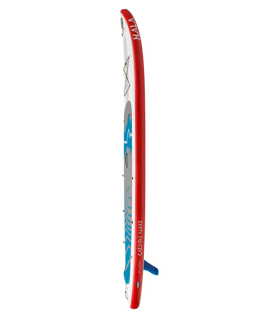 The Hala Carbon Nass 12’6 Inflatable Stand Up Paddleboard is narrow and nimble, allowing it to glide effortlessly across lakes and oceans. The inner carbon stringer increases stiffness which drastically improves the stiffness and responiveness of the board without sacrificing portability. If you are wanting to go far and fast, look no further than the Hala Nass!