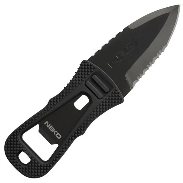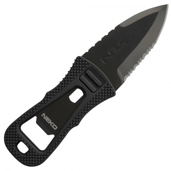 The NRS Neko Knife is a compact, blunt-tip or sharp-tip knife that gives you the same versatile performance as the Co-Pilot knife with a sleeker profile and a simple friction-release sheath. Includes smooth and serrated cutting edges, blunt safety tip and integrated bottle opener, plus a comfortable rubber grip.