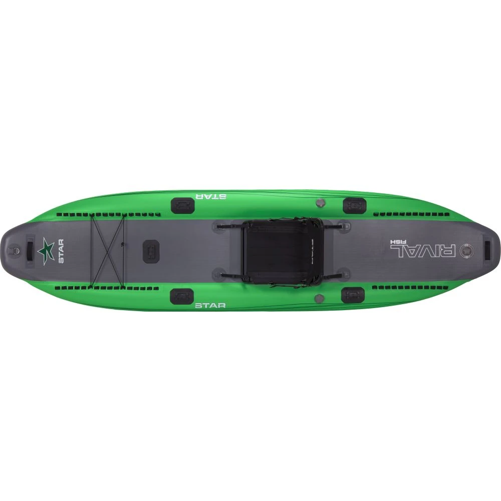 The oversized NRS STAR Rival Inflatable Fishing Kayak is a spacious and stable inflatable sit-on-top kayak / hybrid SUP that is designed specifically with fishermen in mind. The big brother to the STAR Challenger, the 12’6″ Rival has the deck space and air volume to carry any paddler / angler plus all the gear and tackle you could want. Ultra stable with a firm drop-stitch deck and raised seat, the Rival is easy to stand up and sight cast, even in choppy or windy conditions.