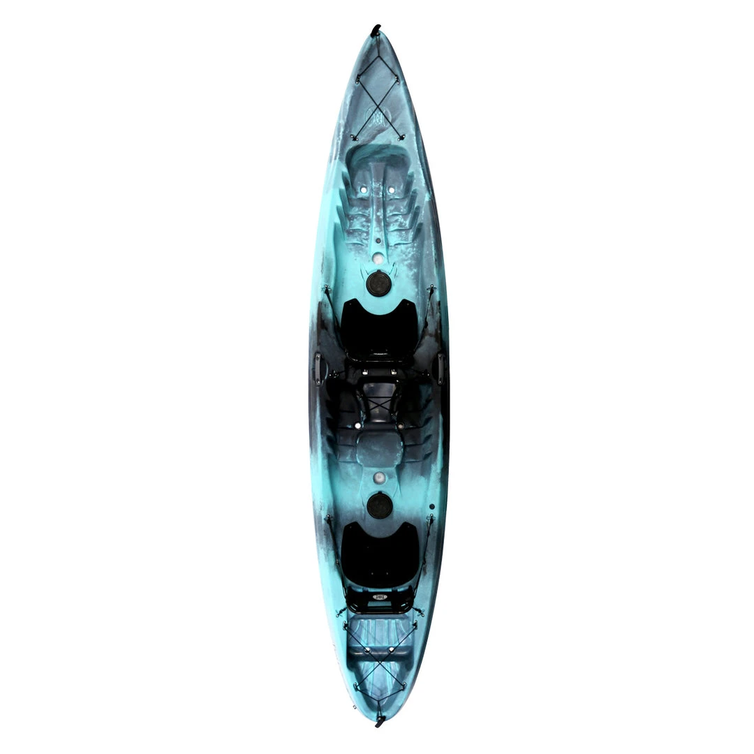 Three’s company in the Perception Tribe 13.5 tandem sit on top kayak. Excellent for discerning, price-conscious beginners or seasoned paddlers, the Tribe performs adeptly in the surf and rough ocean, flat water, and lazy rivers. It’s the complete package of speed, control, and comfort. Paddling solo is also no problem from the center seat. Thanks to a new high-back frame seatback, the Tribe is now even more comfortable with increased support and cushioning. Plus, this new seatback takes relaxation to the next level offering infinitely adjustable recline positions, creating the ultimate lounge to kick back, relax and catch some rays. Other features include self-bailing scupper tubes as well as bow and stern storage tankwells with bungees to safely secure gear such as backpacks, small picnic baskets and coolers. Looks great on the water with a selection of tropical colors that’s appealing to paddlers of all kinds.