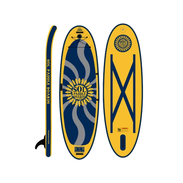 The SOLshiva 10′ inflatable stand up paddle board package is SOL’s yoga specific SUP. With updated graphics and a newly engineered stringer system, this board lends ultimate stability for beginners and well seasoned yogies alike. The width and full length deck pad make this the perfect board for yoga, fishing, or anyone looking for looking for an overly stable SUP. A side-mount carry handle keeps the deck clean for lying down on the board. The SOLShiva package includes a Boost 3-piece aluminum paddle, Eco rolling backpack, hand pump, fin, 12v electric pump & repair kit.
