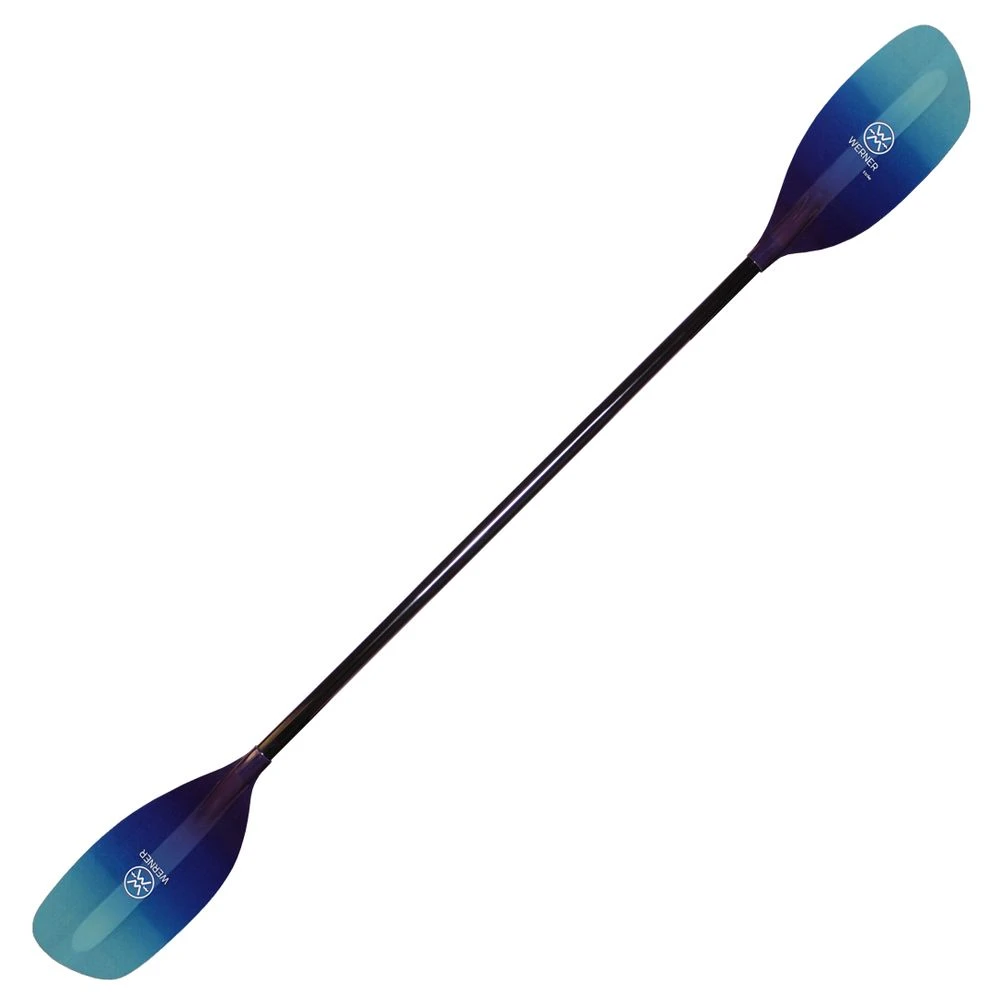 Combining the bomber strength of their fiberglass paddles with the high performance of the Odachi Race paddle, the Werner Strike Whitewater Kayak Paddle is the latest innovation in the world of whitewater paddles. The increased blade to shaft offset helps to maximize power on forward strokes. The Strike is based on the popular mid-sized Sherpa blade and is ideal for smaller paddlers or those who prefer a higher cadence.